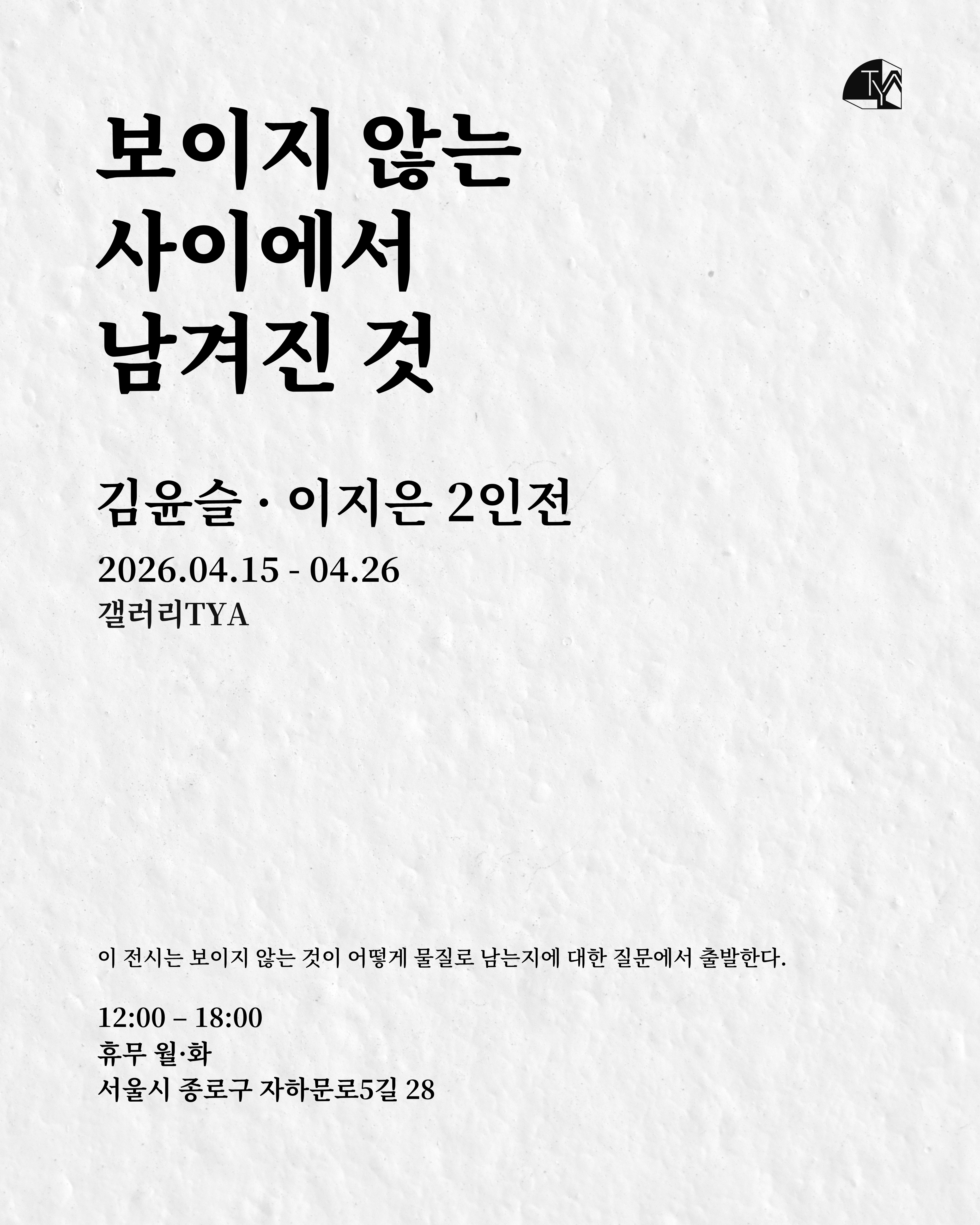 « 모든 일정표 일정(이벤트)이 종료되었습니다. 김윤슬 · 이지은 2인전 / 보이지 않는 사이에서 남겨진 것 26/04/15/8:00 오전 - 26/04/26/5:00 오후 « 김효정 / 행복 연습실 David Douglas / Deokgu » 캘린더에 추가하기 구글 캘린더에 추가하기 iCalendar Outlook 365 Outlook Live 세부 사항 시작: 26/04/15/8:00 오전 종료: 26/04/26/5:00 오후 이벤트 카테고리: 전시중 이벤트 태그:2인전, 김윤슬작가, 보이지않는사이에서남겨진것, 서촌전시, 이지은작가
