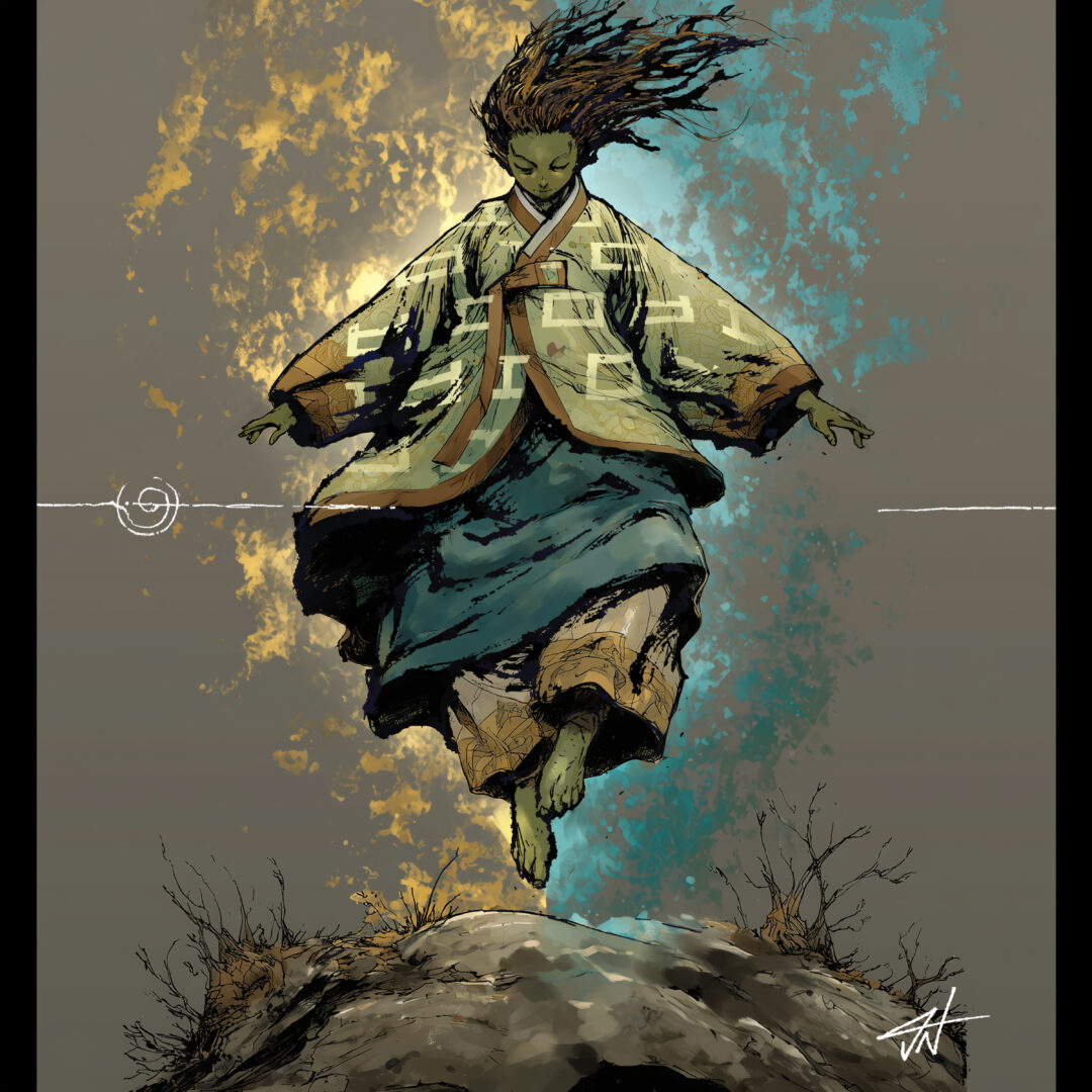 모든 것은 흙에서 태어나 다시 흙으로 돌아간다. 토(土)는 생명의 터전이자, 모든 흐름이 지나가는 중심이다. 이 작품은 생성과 소멸, 그리고 재순환의 구조를 하나의 화면에 담아낸다.