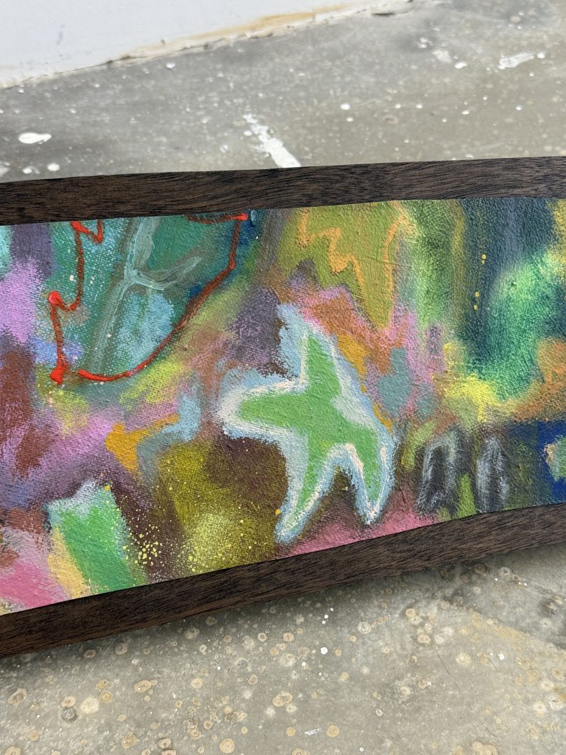 "반복적인 붓질과 중첩된 색감을 통해 내면의 감정 파편들을 담아내는 과정입니다. 눅눅한 색감 사이로 비치는 빛의 상징들이 관람객에게 작은 희망의 메시지로 닿기를 바랍니다."